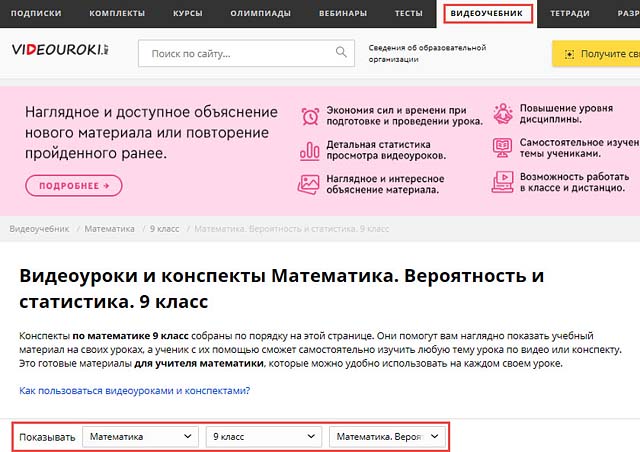 Новый комплект видеоуроков «Математика. Вероятность и статистика. 9 класс»