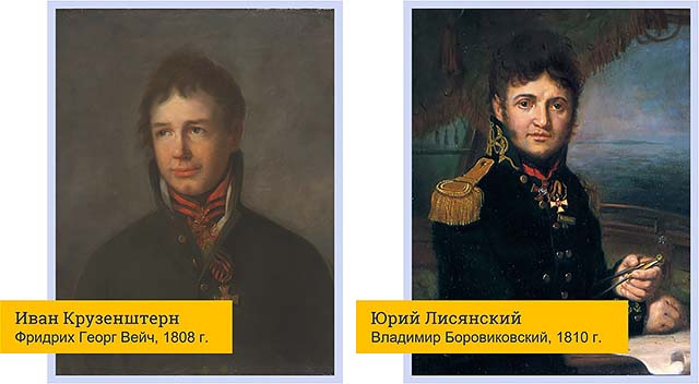 7 августа 1803 года суда покинули Кронштадт. Обогнув Мыс Горн, корабли разделились, чтобы выполнить максимум задач: «Нева» под командованием Юрия Лисянского направилась к Русской Америке, а «Надежда» — к Маркизским и Гавайским островам. «Нева» успешно доставила грузы в Ситку и провела обширные картографические работы, а Лисянский открыл остров, названный его именем. «Надежда» тем временем достигла Камчатки, откуда начался ответственный, но неудачный дипломатический этап в Японии, придерживавшейся политики самоизоляции.