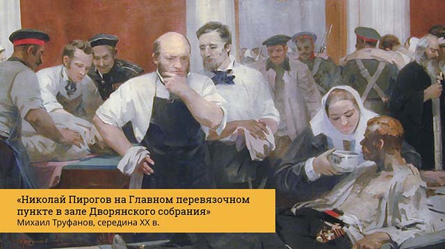Он применил наркоз, доказав его эффективность и безопасность, разработал систему сортировки пострадавших — триаж. Пирогов внедрил гипсовую повязку, организовал первую в мире общину сестёр милосердия, предвосхитив развитие сестринского дела и идей Красного Креста.