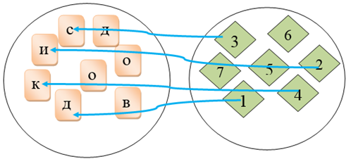 2. (3 балла) Расшифруй слово, используя соответствие цифр и букв, и запиши его в ответе без пробелов и каких-либо знаков препинания.