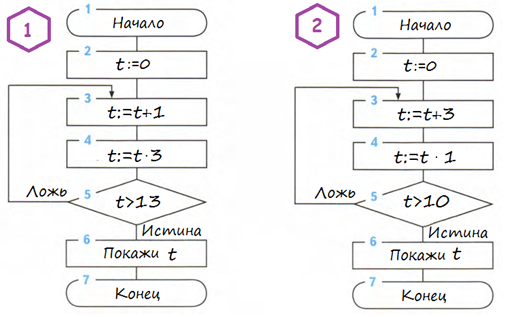 Запиши в ответе номер алгоритма, результат выполнения которого больше. В ответе укажи только число без кавычек и каких-либо знаков препинания, например, 3