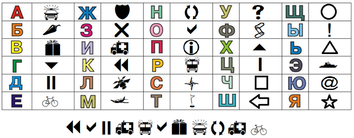7. (4 балла) Саша закодировал слово. Используя кодовую таблицу, раскодируй слово, которое он записал.