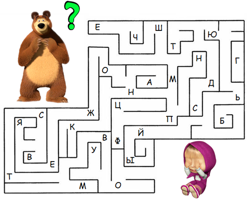 8. (5 баллов) Помоги Мише найти Машу по самому короткому пути. На пути собери все буквы по порядку, и получишь слово. Что значит это слово?