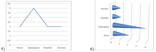 После выполнения вычислений были построены несколько разных типов диаграмм по значениям диапазона ячеек A1:B4. Найдите сумму номеров верных диаграмм.