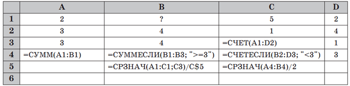 5. (4 балла) Ниже представлен фрагмент электронной таблицы в режиме отображения формул.