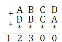 10. (5 баллов) ABCD – четыре последовательные цифры, идущие в порядке возрастания, а DCBA – те же цифры, располагающиеся в обратном порядке. Четыре звёздочки – это те же самые четыре цифры в неизвестном порядке. Какое число обозначено четырьмя звёздочками?
