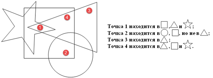 6. (4 балла) Пусть высказывание A – точка принадлежит ромбу, B – точка принадлежит кругу, C – точка принадлежит прямоугольнику. Какое высказывание истинно для всех точек выделенной на рисунке области?