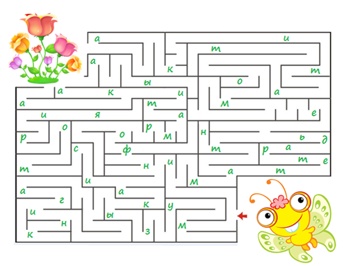 10. (5 баллов) Найдите выход из лабиринта, затем таким же путём пройдите по лабиринту из букв и ответьте на вопрос, который там прочитаете.