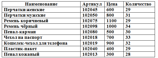 10. (5 баллов) В магазине проводится ревизия остатков непродовольственных товаров. Получилась следующая таблица: