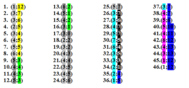 2. (3 балла) Переведите числа из восьмеричной системы счисления в десятичную. Не отрывая руки, отметьте полученные точки на координатной плоскости, причём те числа, которые отмечены ахроматическими цветами, необходимо отмечать со знаком «-». Изображение какого животного получится?