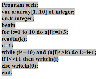 4. (4 балла) Что будет выведено на экран в результате выполнения следующей программы, написанной на языке PascalABC, если ввести k равное 8?
