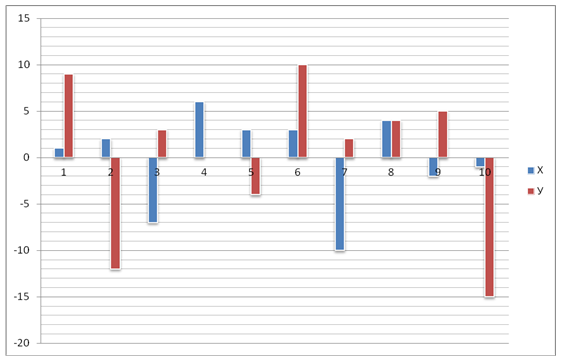 абсцисс расположены номера ходов, а по оси ординат – значения X и Y. Всего исполнитель Рисовальщик сделал 10 ходов.