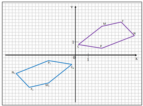 5. (4 балла) Посмотрите на рисунок, где при помощи осевой симметрии с центром в т.О получен многоугольник C1M1F1N1P1 и скажите, какие из точек отмечены неверно.