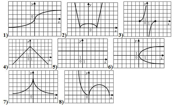 7. (4 балла) Укажите номера графиков, которые являются функциями.