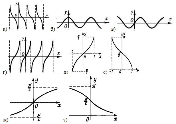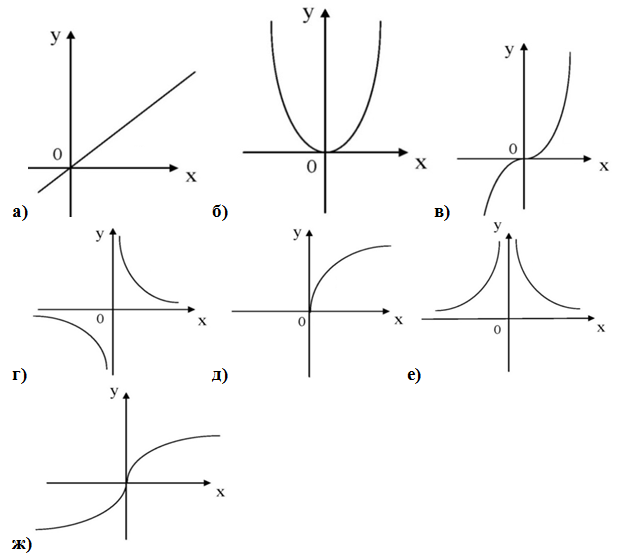 6. (4 балла) Соотнесите функции с их графиками. Буквы, обозначающие графики, запишите рядом с функциями в таблице.