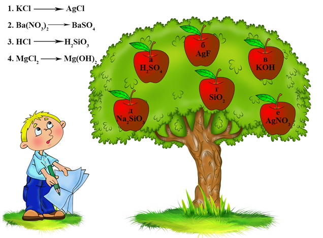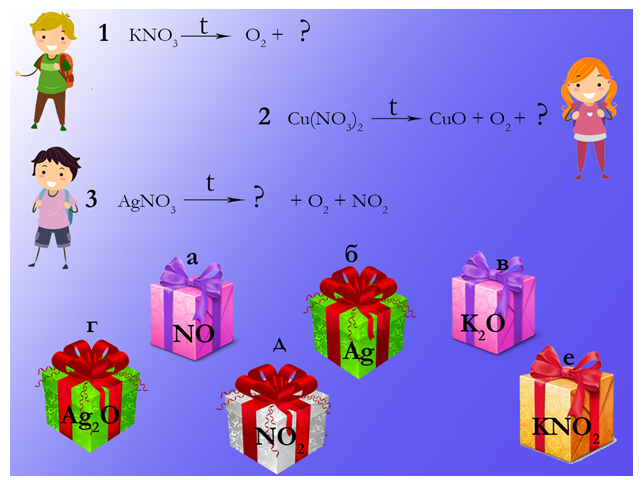 6. (4 балла) Помогите ребятам выбрать правильный подарок, чтобы закончить уравнения реакций. Ответ запишите в виде сочетания цифр и букв без пробелов и каких-либо знаков препинания, располагая цифры в порядке возрастания, например, 1а2б3в