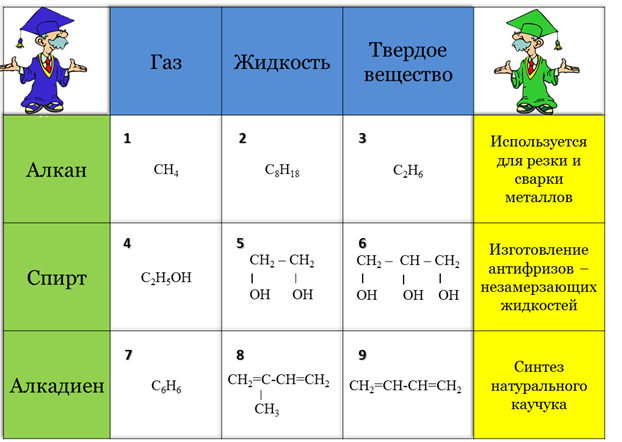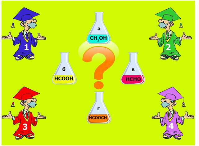 8. (6 баллов) Однажды в лаборатории произошел взрыв, все вещества перепутались, а ученые забыли свои имена и кто с каким веществом работает. Помогите ученым разобраться. Известно следующее:
