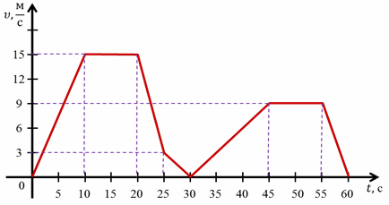 4. (4 балла) По графику зависимости скорости тела от времени, определите путь, пройденный телом за первые 30 с движения, и его среднюю скорость на этом отрезке времени.