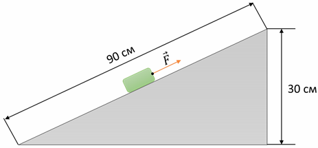 6. (5 баллов) Груз, масса которого 2 кг, ученик равномерно переместил к вершине наклонной плоскости длиной 90 см и высотой 30 см. При этом перемещении сила, направленная по длине наклонной плоскости, была равна 7 Н. Каков КПД данной плоскости? Коэффициент g = 10 Н/кг. Ответ дайте в процентах. (Если в результате вычислений получается не целое число, то округлите его до целого, пользуясь правилом округления. Единицы измерения не пишите — только число).