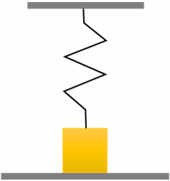 10. (9 баллов) На подставке лежит груз массой 1 кг, связанный с прикреплённой к потолку невесомой пружиной. В начальный момент времени пружина не растянута. Подставку начинают опускать с ускорением 0,4g. Через какой промежуток времени груз оторвётся от подставки, если жёсткость пружины составляет 3 Н/м?