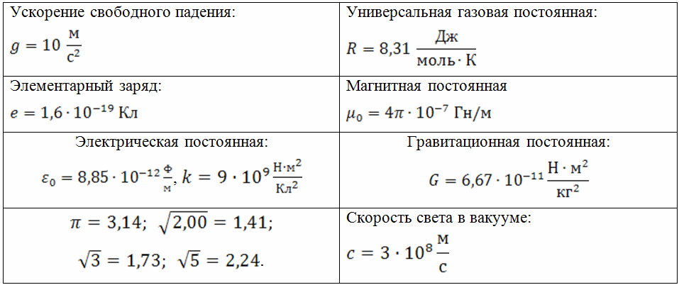 В заданиях искомые величины должны быть вычислены в системе СИ (если другого не оговорено в условии). Если в результате вычислений получается не целое число и если специально не оговорено в условии задания, то округлите его до целого, пользуясь правилами приближенных вычислений, и в бланк ответов запишите округленное число. Наименование величин (например, градус, процент, метр, тонна, км/ч и т.д.) не пишите. Знаки препинания в конце ответа не ставьте. Между знаком минус и числом пробел не ставится.