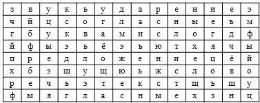 10. (10 баллов) Сколько понятий, которые изучались на уроках русского языка, спряталось в строчках таблицы? Ответ запиши одним числом без знаков препинания. Например, 5