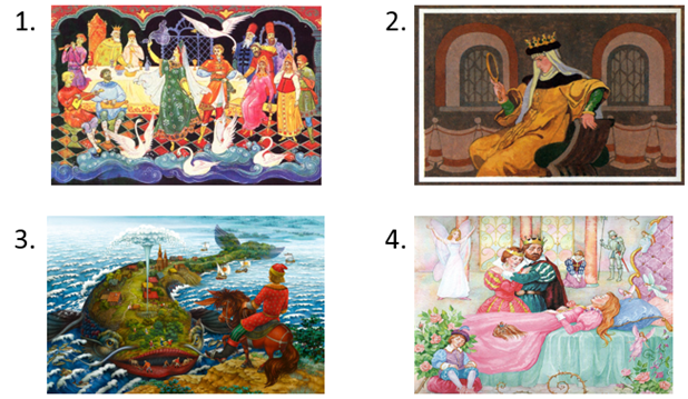 4. (4 балла) Рассмотри внимательно иллюстрации к сказкам А. С. Пушкина. Укажи, какая из них является лишней.