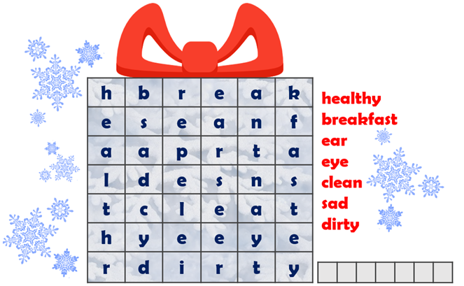 8. (5 баллов) Find all the words on the right. Make up a word of the given letters. Найди все слова в столбике справа. Из оставшихся букв составь слово и запиши его в ответе без пробелов, без кавычек и каких-либо знаков препинания.