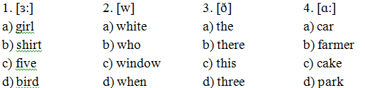 7. (6 баллов) Выбери слово в каждой строке, в котором встречаются следующие звуки: [a?], [d?], [æ].