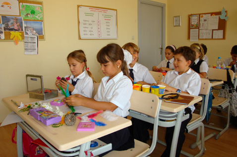 Mädchen, weiße, Jungen, sitzen, basteln
