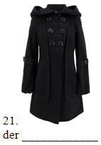 7. die Jacke, die Mütze, das Glas, der Anzug, die Socken, das Hemd