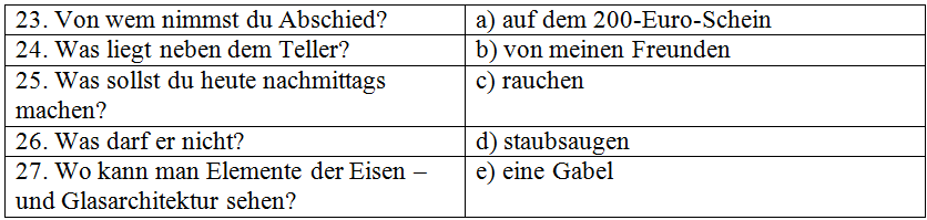 VI. (5 баллов) Verbinden Sie die Bilder mit den Unterschriften! Ответ запишите в виде сочетания цифр и букв без пробелов и каких-либо знаков препинания, располагая цифры в порядке возрастания, например, 26b27c28a