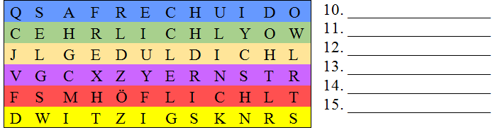 Уважаемые участники олимпиады! Обращаем ваше внимание на то, что ответы можно вводить только с использованием латинских букв (немецкой раскладки клавиатуры), букв ä, ö, ü, и ß, иначе компьютер засчитает вам неверный ответ! Все ответы записываем без каких-либо знаков препинания.