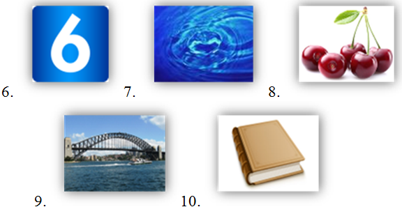 IV. (1 балл за каждый пункт) Запиши в пропуски существительные с неопределённым артиклем. Картинки помогут тебе в этом: число на картинке – число букв в слове. Между словами ставь строго один пробел.