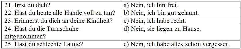 Уважаемые участники олимпиады! Обращаем ваше внимание на то, что ответы можно вводить только с использованием латинских букв (немецкой раскладки клавиатуры), букв ä, ö, ü, и ß, иначе компьютер засчитает вам неверный ответ! В ответе записываем только пропущенные (нужные) слова без каких-либо знаков препинания.