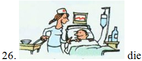 25. Wo warst du? – _____ Krankenhaus.