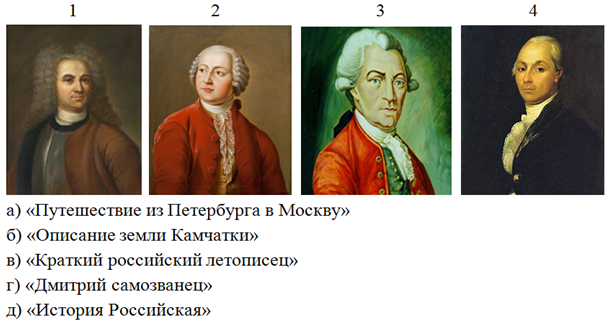 6. (4 балла) Соотнесите портреты исторических деятелей и названия их трудов. Один из буквенных пунктов будет лишним. Ответ запишите в виде комбинации цифр и букв без пробелов и каких-либо знаков препинания, цифры должны идти по порядку, например, 1а2г3в4б