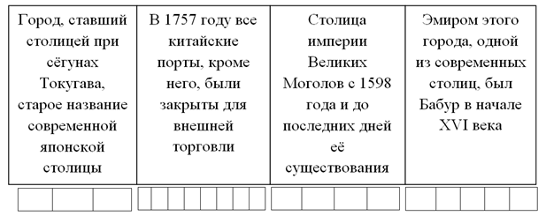 10. (8 баллов) В каждом из четырёх подпунктов выберите событие, которое произошло раньше остальных. Та цифра, под которой оно обозначено, и будет вписана в бланк ниже. Таким образом, вы получите четырехзначное число, которое вам нужно отнять от 2016 года и получить дату основания одного из русских городов. Запишите название города в ответе без кавычек и каких-либо знаков препинания, например, Смоленск