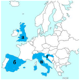 4. (2 балла) Расположите в правильной последовательности вхождение в состав ЕС обозначенных на карте государств от начала его образования. Ответ запишите в виде последовательности букв без пробелов и каких-либо знаков препинания, например, абвг