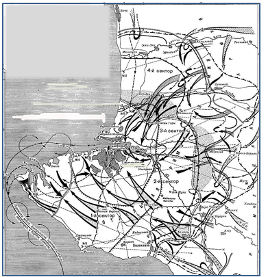 5. (2 балла) Посмотрите на карту. Определите: оборона какого города во время Великой Отечественной войны отражена на ней? В ответе укажите название города без кавычек и каких-либо знаков препинания, например, Москва