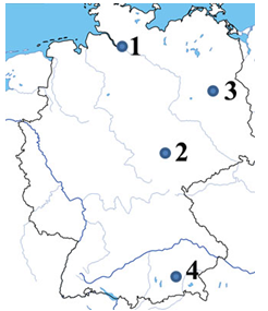 3. (1 балл) Под какой цифрой на карте отмечен город, где летом 1919 года Учредительное собрание приняло Конституцию Германии, установившую республиканский демократический строй?