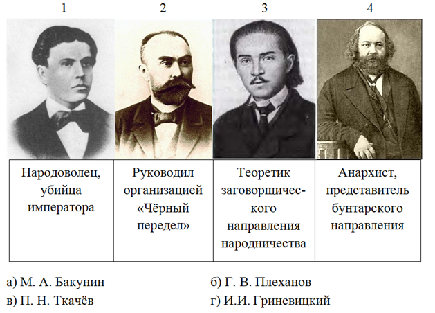 4. (2 балла) Соотнесите портреты и краткие биографии исторических деятелей с их фамилией. Ответ запишите в виде комбинации цифр и букв без пробелов и каких-либо знаков препинания, цифры должны идти по порядку, например, 1а2б3в4г
