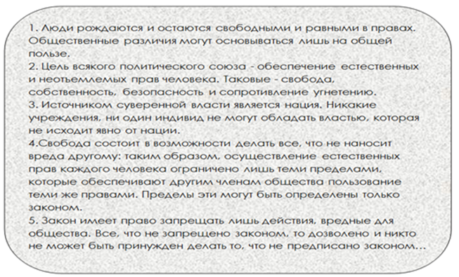 9. (7 баллов) Прочитайте следующие два документа. Догадайтесь, что это за документы, принятые в Новое время, и вспомните, когда они были приняты. Сколько лет отделяют принятие этих документов? Ответ запишите в виде числа без кавычек и каких-либо знаков препинания, например, 250