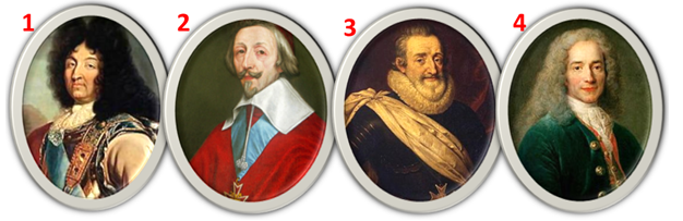 8. (6 баллов) Соотнесите портрет, личность из истории Франции и высказывание, которое приписывается данному человеку. Ответ запишите в виде комбинации символов без пробелов и каких-либо знаков препинания. Следует записывать сначала арабские цифры, которые должны идти по порядку, затем буквы, после чего римские цифры, например, 1аII2бIII3гIV4вI