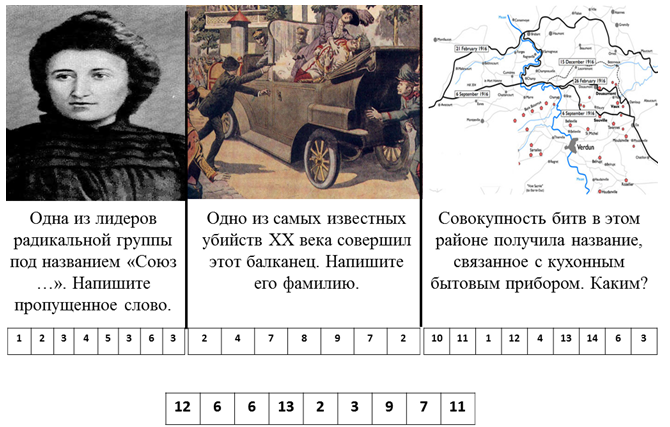 10. (7 баллов) Ответьте на вопросы с помощью картинок и поясняющего к ним текста. Каждому числу в поле для ответов соответствует определённая буква. Воспользовавшись ответами, впишите в нижнее поле ключевое слово из получившихся букв. Запишите в ответе получившееся слово без кавычек и каких-либо знаков препинания, например, капитуляция
