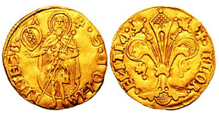 3. (1 балл) Рассмотрите изображение средневековой монеты. В каком городе она начала впервые чеканиться?