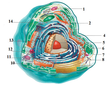 1. (1 балл) Какая из структур клетки содержит зеленый пигмент хлорофилл?