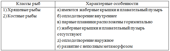 7. (4 балла) Установите соответствие между классами рыб и их характерными особенностями.