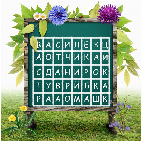 6. (4 балла) Разгадайте филворд, найдя в сетке кроссворда названия растений, относящихся к семейству Сложноцветные: