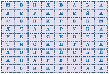 10. (по 10 баллов за каждый пункт) Разгадайте филворд, в котором спрятаны фамилии известных учёных-биологов. Подсчитайте, сколько ученых скрыто в филворде. В ответе укажите только число без каких-либо знаков препинания, например 5